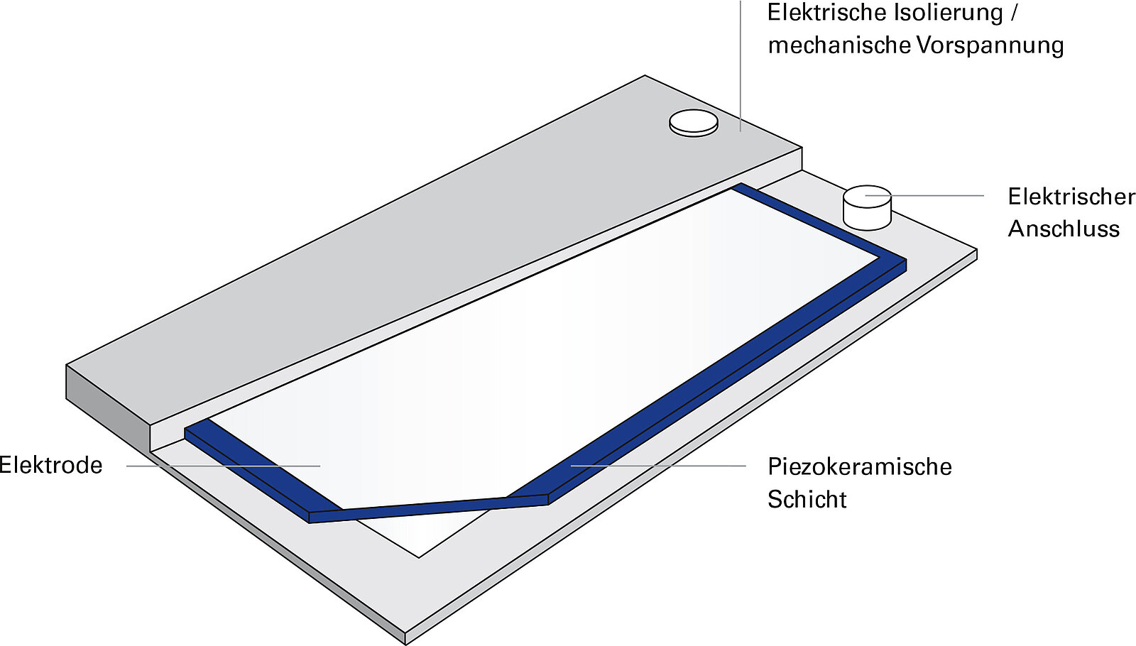 Piezokeramische Platten, die in vollkeramischen DuraAct Flächenwandlern zum Einsatz kommen, gleichen in ihrem Aufbau einem Kondensator. Die Keramik wirkt als Dielektrikum zwischen den beiden metallisierten Oberflächen der Keramik, welche die Elektroden darstellen. Beim Anlegen einer elektrischen Spannung bildet sich ein elektrisches Feld, dessen Feldlinien senkrecht durch die Keramik verlaufen. Dies bewirkt eine um 90° zu den Feldlinien versetzte Kontraktion der Keramik, sodass sich der Aktor gleichmäßig in der Ebene zusammenzieht. Dieses Verhalten wird als piezoelektrischer Quereffekt (d31- oder Transversal-Effekt) bezeichnet.