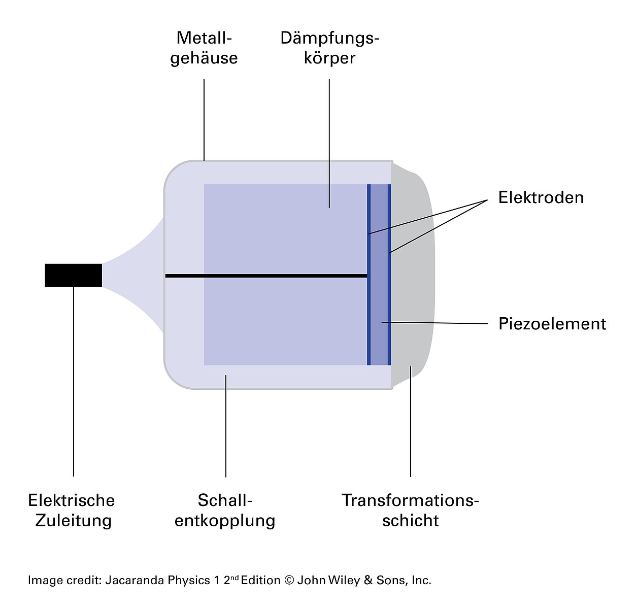 Im Transducer sorgt eine Anpassungsschicht (Transformationsschicht) zwischen dem Piezoelement und dem umgebenden Medium für eine möglichst kleine Differenz der Schallkennimpedanz und erhöht so die Qualität der Übertragung. Optimaler Weise hat diese Schicht eine Dicke von einem Viertel der Wellenlänge des Schalls (λ/4).