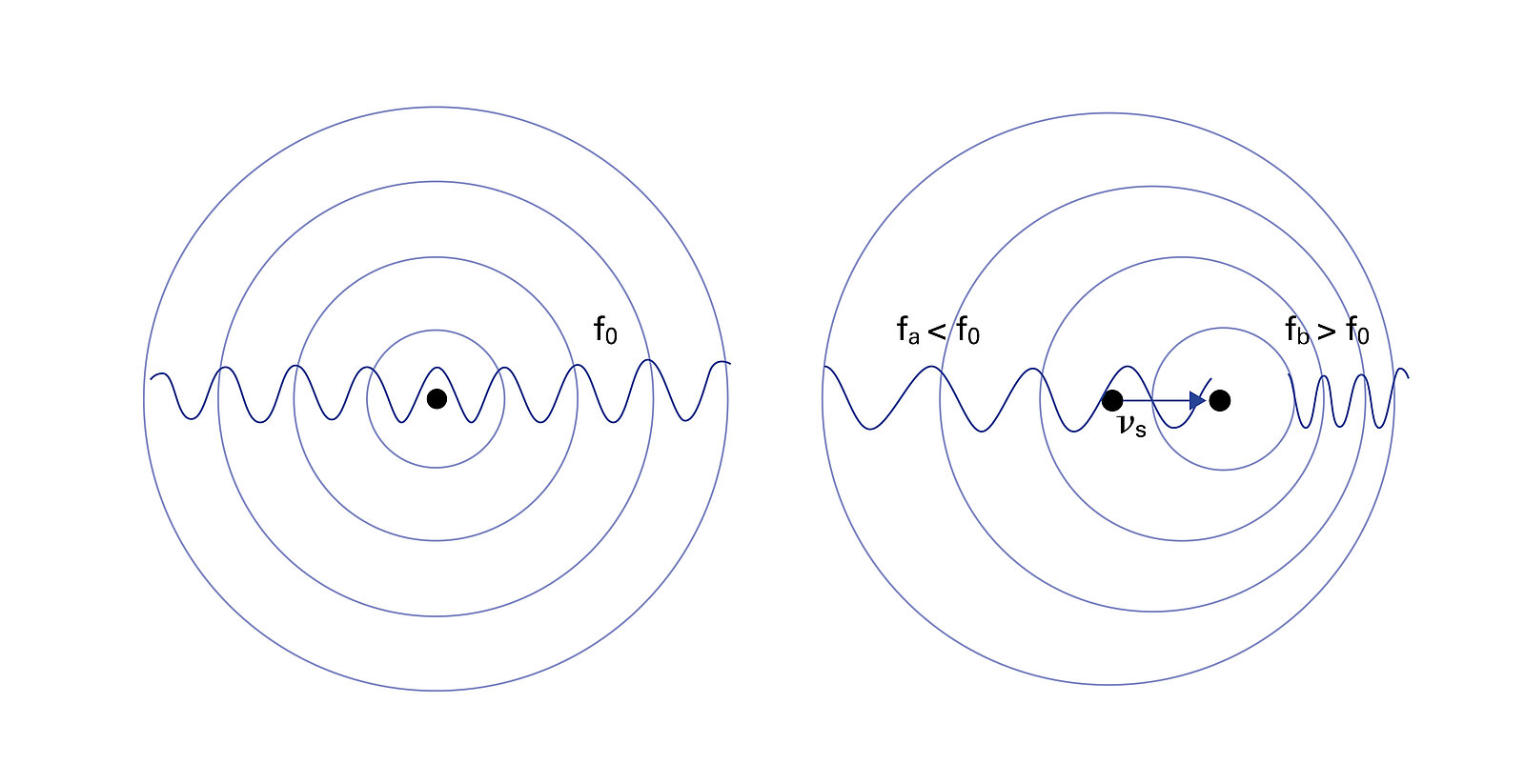 Die Strömungsrichtung kann auch durch die Frequenzänderung bestimmt werden. Nähern sich die Flüssigkeitspartikel dem Sensor, verkürzt sich die Wellenlänge des Schalls und die Frequenz steigt an (fb), da die Schallwellen vor den Partikeln hergeschoben werden und diese stauchen. Umgekehrt verlängert sich die Wellenlänge und die Frequenz des Schalls sinkt, wenn sich die Partikel vom Sensor entfernen (fa). Diese Frequenzänderung Δf der Schallwellen kann detektiert und mit der Schallfrequenz des ausgesendeten Ultraschallimpulses verglichen werden.