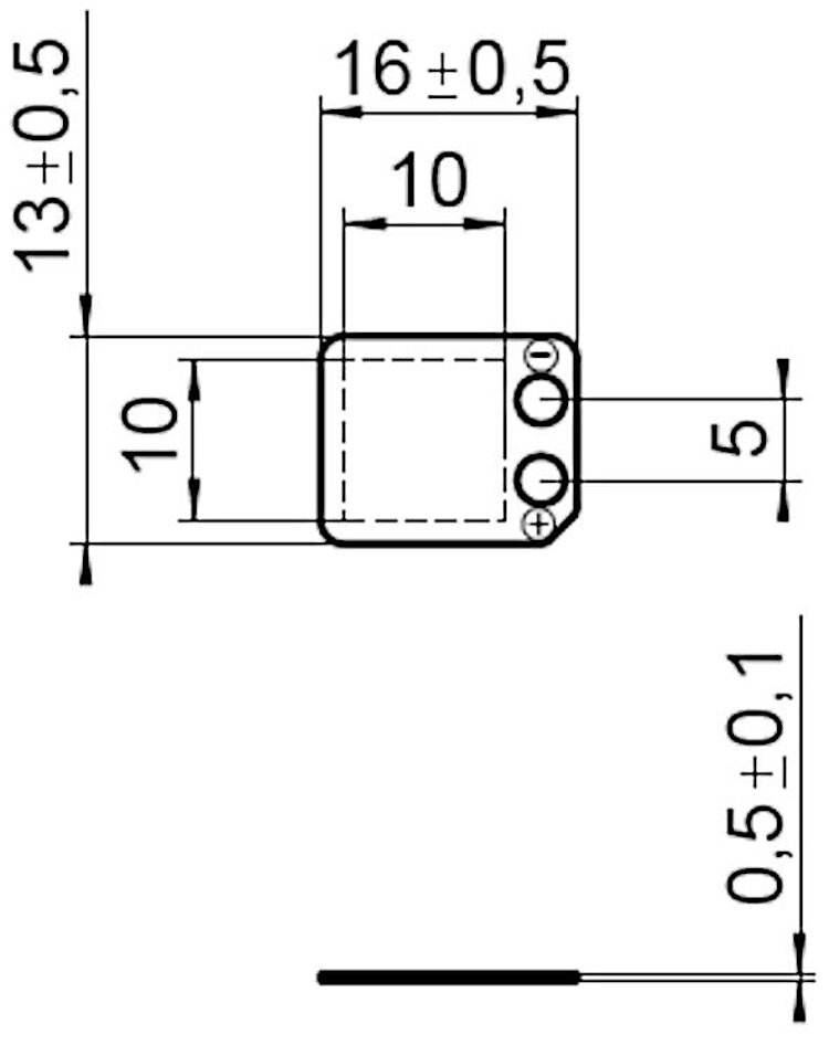 DuraAct Flächenwandler; DuraAct piezoaktorischer Antrieb; 13 mm × 16 mm × 0,5 mm (B × L × TH); lötbare Kontakte