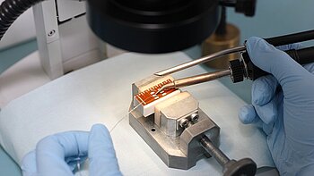 PI Ceramic sorgt für die Integration von Piezokeramiken in das Kundenprodukt. Dazu gehören sowohl die elektrische Kontaktierung der Elemente nach Kundenvorgaben als auch die Montage in beigestellte Bauelemente, das Verkleben oder der Verguss. PICMA® Multilayeraktoren können z. B. in kundeneigene Führungs- oder Hebelelemente eingebaut werden.