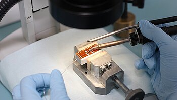 Standardkontakte für Piezoaktoren sind 100-mm-Anschlusslitzen oder Lötpunkte. Je nach Piezoelement werden unterschiedliche Litzen nach AWG-Standard verwendet. Bitte beachten Sie die Löthinweise für das jeweilige Produkt. Alternative Anschlussvarianten sind möglich.