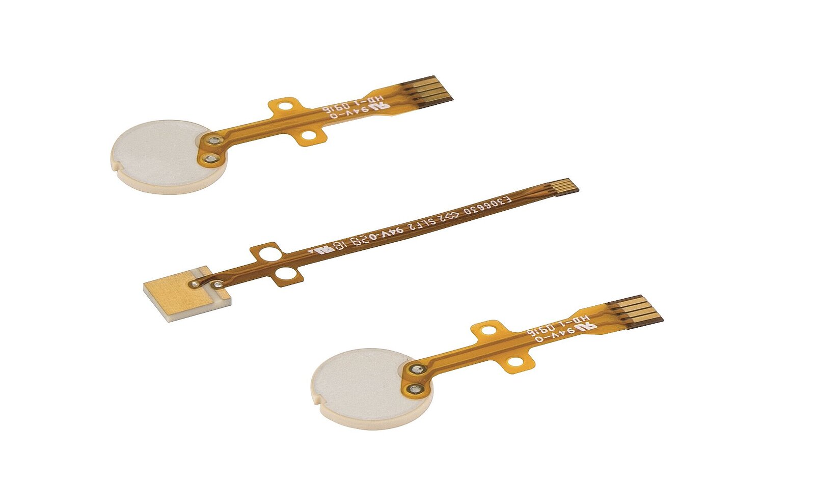 Flexible Leiterkarten lassen sich biegen und falten, so ist die Kontaktierung eines Piezobauelements auch auf engstem Bauraum möglich
