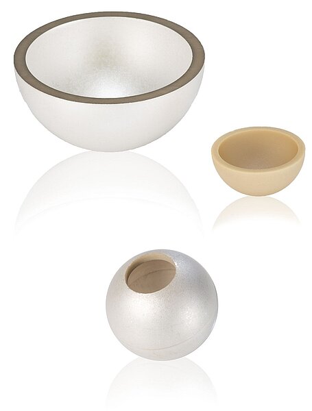 Piezokomponenten von PI Ceramic sind ab sofort auch in Form von Halb- oder Hohlkugeln erhältlich. Der Außendurchmesser liegt zwischen 10 und 60 mm. Auf Wunsch sind auch größere Abmessungen möglich. Die minimale Wanddicke beträgt 1 mm, auch hier sind auf Kundenwunsch weitere Abmessungen realisierbar.